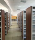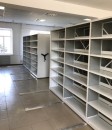 Разработали индивидуальный проект расстановки стеллажей. Установили мобильные стеллажи серии Л в книгохранилище и стационарные стеллажи серии СА в читальном зале с отделкой торцевой стороны стеллажа ЛДСП.