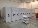 Крайние стеллажи оснащены замками, блокирующими движение. Это позволяет сэкономить денежные средства на оборудовании – внутренние стеллажи без дверей, но получить доступ к ним можно только через крайние секции.